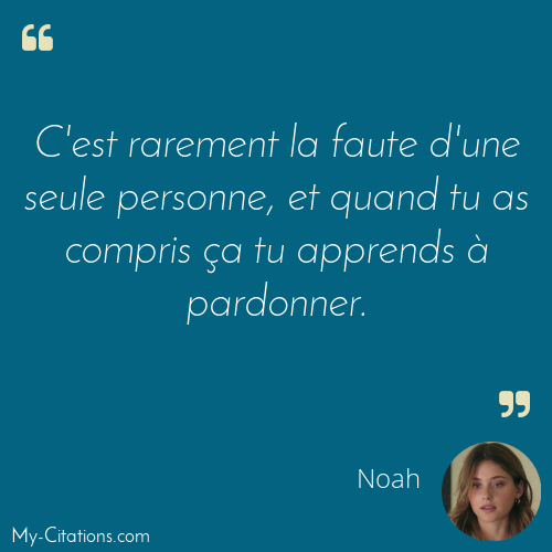 C'est rarement la faute d'une seule personne, et quand tu as compris ça tu apprends à pardonner.