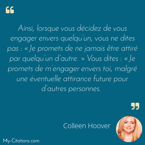 Ainsi, lorsque vous décidez de vous engager envers quelqu’un, vous ne dites pas : « Je promets de ne jamais être attiré par quelqu’un d’autre. » Vous dites : « Je promets de m’engager envers toi, malgré une éventuelle attirance future pour d’autres personnes.